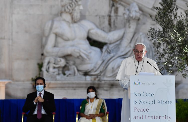 Dalla piazza del Campidoglio, "cuore della città" di Roma, il Papa prega con i leader religiosi mondiali e lancia con loro un appello di pace. Un minuto di silenzio per ricordare le vittime della pandemia e delle guerre. "La pace è la priorità di ogni politica", afferma Francesco esortando a partire da alcuni "obiettivi raggiungibili", come l'impegno comune per un vaccino "idoneo e accessibile a tutti"