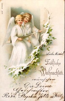 Quando i saluti si mettevano accanto alle immagini. “Sulle prime cartoline – sottolinea Reiter – troviamo spesso delle frasi scritte a mano, a volte anche stenografate. Questo perché agli inizi sul lato dedicato all’indirizzo non si poteva scrivere nulla e quindi accanto alle immagini trovavano spazio gli auguri personali del mittente. Col passare degli anni, le parole di Stille Nacht sono rimaste, ma sono cambiati i soggetti. Le immagini del presepe con gli angeli hanno lentamente lasciato spazio a immagini di paesaggi innevati o a volti di donna incorniciati tra rami di abete. Ai tempi della guerra, inoltre, le immagini scelte per le cartoline erano spesso propagandistiche. Dal secondo conflitto mondiale i disegni e le illustrazioni hanno lasciato sempre più spazio alle fotografie e soggetti preferiti erano i paesaggi o gli abeti addobbati a festa”. In oltre trent’anni di ricerche, Martin Reiter ha raccolto circa 400