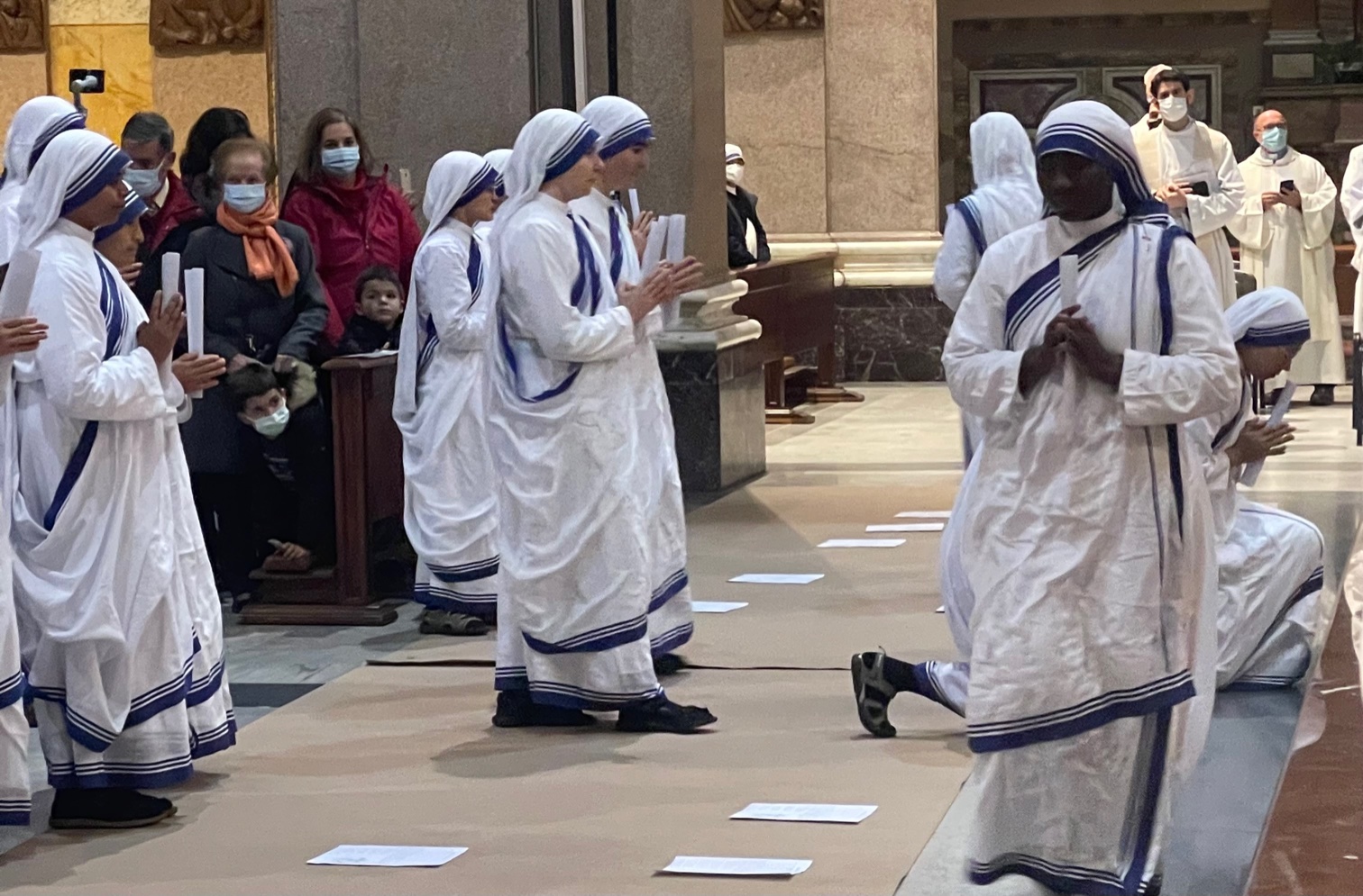 “In un mondo così difficile, come ci possono aiutare i racconti biblici che parlano di cielo e bellezza? E per rispondere la Chiesa oggi dice a tutti di guardare a Maria, la piccola e semplice donna di Nazareth che è riflesso di Dio e bellezza di ogni bellezza. Una bellezza di una luce che non abbaglia, ma attrae. Maria è come uno specchio con due facce: una che riflette Dio, il suo amore, la sua tenerezza, la sua misericordia e e nell’altra vediamo riflessi noi, che come lei abbiamo ricevuto il seme di vita eterna”. Lo ha detto ieri nella basilica di San Giuseppe al Trionfale a Roma il card. Francesco Montenegro, membro della Congregazione delle cause dei santi e del Dicastero per il servizio dello sviluppo umano integrale, nel corso della celebrazione della professione perpetua di 18 suore appartenenti all’ordine delle Missionarie della carità. Le suore, provenienti da ogni parte del mondo, sono giunte a Roma per la celebrazione e detto il loro “Sì” sono ripartite verso le “periferie del mondo”. Quelle periferie tanto care a Santa Madre Teresa di Calcutta, fondatrice delle Missionarie della carità.