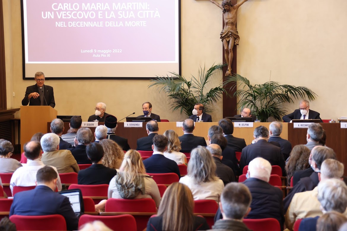 L’attrattiva di essere “avanti”. Delpini ha proseguito con una osservazione ulteriore su autorevolezza e incisività della proposta pastorale di Martini, che “trova una sua particolare motivazione nella convinzione che Martini rappresentasse una attitudine ‘progressista’, aperta verso le problematiche e sfide contemporanee. Il presupposto è che invece nella Chiesa di quegli anni ci fossero delle attitudini più ‘conservatrici’ e comunque più chiuse”. Secondo l’oratore, “queste attitudini sono entrambi legittime nella Chiesa, ma la sensibilità contemporanea e la comodità mediatica, che ama le semplificazioni e le contrapposizioni, ha insistito nel creare l’immagine di posizioni in tensione, se non conflittuali. Secondo queste visioni approssimative Martini finisce per essere progressista e mentre Giovanni Paolo II conservatore; Milano ‘che è avanti’ e Roma ‘che è indietro’, Martini aperto e Benedetto XVI chiuso…”. A questo punto mons. Delpini ha chiarito: “la semplificazione riduttiva, anche se ha contribuito al confluire del consenso di una certa parte della sensibilità contemporanea, non consente tuttavia un adeguato apprezzamento dell’attitudine del card. Martini verso la contemporaneità”. Dunque, si è domandato: in che senso Martini è “avanti”, è “aperto”? “Si possono individuare alcune attenzioni che confermano una sua sapiente lettura del mondo contemporaneo, non priva, forse, di una certa accondiscendenza”.