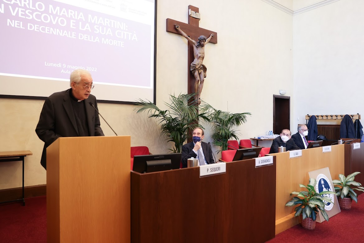 Fiducia nella Parola parlata. Nel suo contributo al convegno, l’arcivescovo di Milano ha osservato ancora: “se volessimo poi trovare una cifra qualificante il magistero del card. Martini è innegabile riconoscere quanto si concentri continuamente e si alimenti del tema della Scrittura e della Parola di Dio. Forse – si potrebbe anche ritenere – che lo stesso Martini ha voluto concentrare tutta la sua missione nell’intento preciso di voler richiamare la Chiesa di Milano e tutta la Chiesa a questo riferimento sostanziale alla Parola, giungendo addirittura a sognare una Chiesa tutta sottomessa alla Parola di Dio”. A questo punto l’arcivescovo ha richiamato due aspetti. “Il primo attiene a una particolare fiducia accordata alla parola parlata. Cioè che più si esprime nella predicazione che nella pubblicazione, nella conversazione che nella celebrazione. La stessa imponente mole delle sue pubblicazioni è composta in gran parte da trascrizioni di suoi interventi orali (predicazioni di esercizi spirituali, lezioni magistrali, interventi in molti contesti, discorsi, ecc). La fiducia nella parola parlata è una espressione della convinzione che parlando, nell’incontro in presenza, è possibile farsi capire, aiutare a capire”. Il secondo aspetto “segnala una accentuazione del linguaggio dell’insegnamento. La terminologia scolastica utilizzata per le forme più note del suo magistero mi sembra una conferma di questa accentuazione. Ha infatti chiamato ‘Scuola della Parola’ la sua proposta di formazione per i giovani. Ha chiamato ‘Cattedra dei non credenti’ la sua convocazione di personalità della cultura contemporanea per il dialogo su alcuni temi e sfide del presente”. La terminologia “scuola”, “lectio”, “cattedra” viene “dall’immaginario accademico e caratterizzano la particolare sensibilità del card. Martini”.