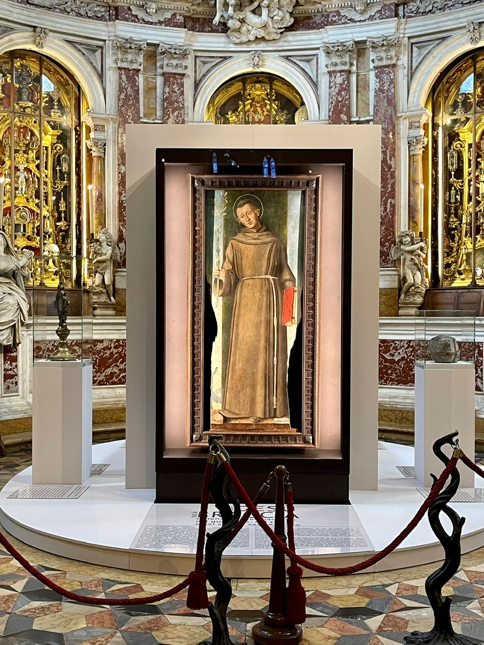 Abbiamo avuto un momento iniziale di celebrazione, invitando per il primo giorno della Tredicina il vescovo di Forlì-Bertinoro, mons. Livio Corazza, proprio perché questa prima predica, in cui si scopre il talento di Antonio predicatore, è stata a Forlì, a Montepaolo. Oltre a questo, più che un evento è stato pensato un filo conduttore di carattere visivo: nella cappella delle reliquie è stata esposta una tavola inizialmente il giaciglio di Sant’Antonio a Camposampiero, che, due secoli dopo l’utilizzo come letto da parte del Santo, è stato dipinto con una bella immagine di Sant’Antonio. La tavola ha un doppio valore storico-artistico e di reliquia devozionale. Nell’immagine dipinta Antonio tiene tra le mani, con forza, il Vangelo come segno di una predicazione che mette radice soprattutto nella sapienza biblica e nell’amore per Gesù.