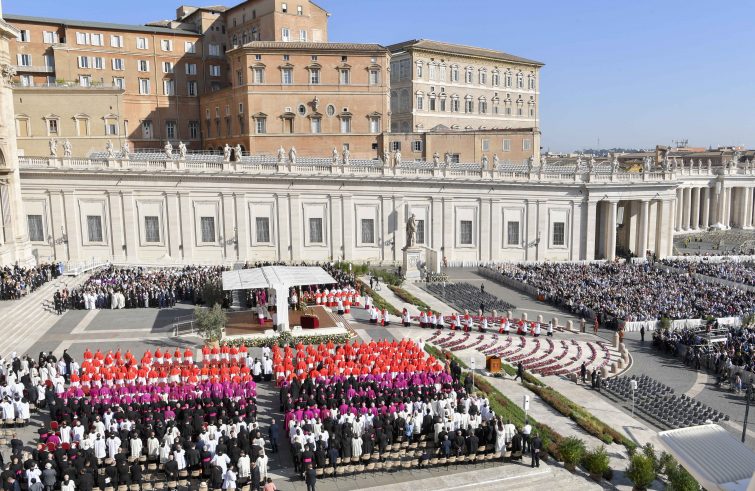 Piazza San Pietro caleidoscopio di colori dove predominante è il porpora del collegio cardinalizio da oggi arricchito di 21 nuovi principi della Chiesa. Papa Francesco ha infatti presieduto alle 10 di oggi, sabato 30 settembre, il suo nono Concistoro durante il quale ha imposto la berretta cardinalizia a 21 nuovi porporati: 18 elettori e 3 non elettori. Presenti alla liturgia 12 delegazioni ufficiali da Spagna, Francia, Polonia, Portogallo, Colombia, Argentina, Giordania, Palestina, Sud Sudan, Ordine di Malta e Santo Sepolcro. Per l’Italia era presente il ministro dell’Interno, Matteo Piantedosi. In piazza anche il presidente della Camera dei Deputati Lorenzo Fontana e Romano Prodi. Tra i 12mila fedeli tanti familiari e amici dei nuovi porporati che con lunghi applausi hanno manifestato la loro gioia nel momento in cui Bergoglio imponeva a ciascuno lo zuccotto e la berretta prima di consegnare l’anello e assegnare il titolo cardinalizio.