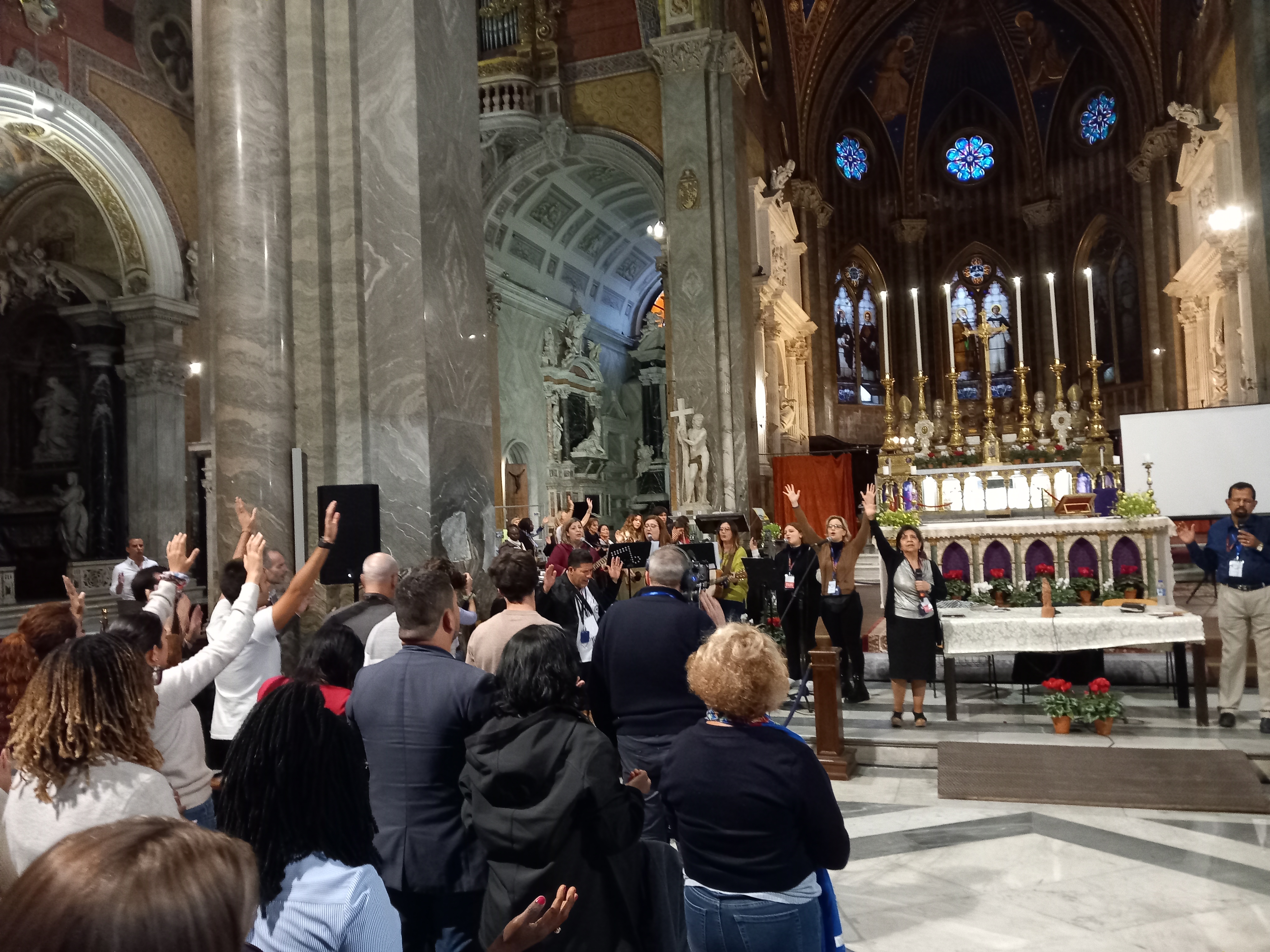 “Chiamati, trasformati, inviati“, questo il titolo dell’incontro cui hanno aderito oltre duemila partecipanti provenienti da circa 100 Paesi del mondo. Ad accoglierli oltre a molti “veterani” del movimento tra cui l’assistente ecclesiastico del movimento, il Cardinale Raniero Cantalamessa e, nel pomeriggio di oggi anche il Santo Padre. Palpabile l’energia, l’armonia dei canti, la manifestazione della fraternità e quel particolare linguaggio nella preghiera, poco presente nelle liturgie e negli incontri dei movimenti più tradizionali del cattolicesimo, che li avvicina ai movimenti pentecostali di stampo evangelico. Un popolo innamorato dell’Eucarestia, del nome di Gesù e della Madre di Dio, Maria a cui sono intitolate diverse comunità e gruppi sparsi per il mondo. Suddivisi in tre basiliche di Roma, i partecipanti hanno trascorso il primo giorno alternando momenti di preghiera e adorazione a catechesi, guidati da alcuni predicatori del movimento. Tra i temi affrontati la missione, l’intercessione e l’unità.