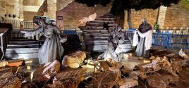 Presepe nella piazza antistante la basilica della Natività a Betlemme (Foto Anna Maria Geuna)