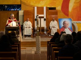 Don Roberto Cassano, nella celebrazione eucaristica che ha concluso il momento di preghiera al cospetto delle reliquie di San Giovanni Paolo II, ha indossato la casula che il Santo Padre indossò nella sua visita a Corviale, a suggellare questo incontro con un altro segno che lega questa comunità ad un pontefice che ha lasciato un impronta indelebile nella Chiesa e nella storia.