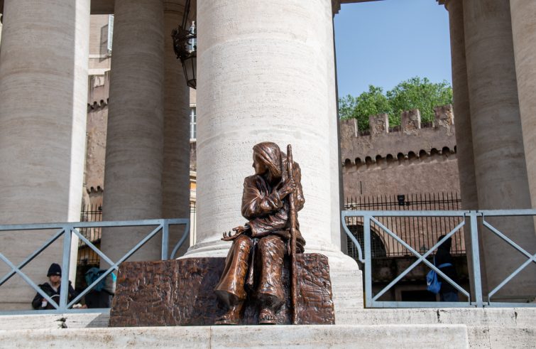 Installata nel 2019 in Piazza San Pietro, assume oggi un significato ancora più forte. Papa Francesco volle che questa scultura fosse lì per ricordare che ogni vita umana è sacra.