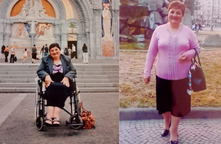 “L’Unitalsi offriva assistenza completa e partii con loro. Il viaggio fu lunghissimo, in treno, ma la gioia superava ogni fatica”. Il giorno dopo l’arrivo la accompagnano alle piscine: “Non potevo muovermi da sola. Le volontarie mi sostenevano a destra e sinistra, una mi muoveva le gambe a piccoli passi. Mi avvolsero in un asciugamano azzurro, recitammo insieme una preghiera”.