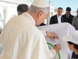 E quando Majd ha parlato con il Papa, gli ha detto con entusiasmo che desideriamo la pace e che lo amiamo davvero con tutto il nostro cuore. Gli ha anche chiesto di firmare la bandiera della Giornata Mondiale del Bambino, un gesto semplice ma molto significativo, che custodiremo sempre con profonda emozione”.