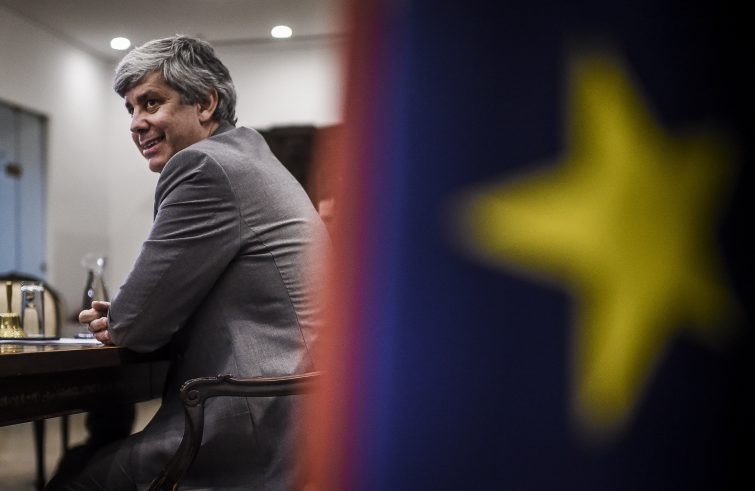Il presidente dell'Eurogruppo Mario Centeno durante la videoconferenza del 9 aprile fra i ministri delle Finanze Ue (foto SIR/UE)
