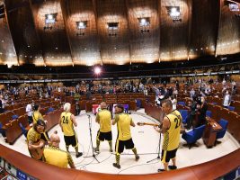 “Non solo per gli aspetti ambientali legati all’acqua ma per la collaborazione che alimenta tra le comunità e contribuendo alle condizioni per la pace che noi tutti speriamo”, le parole di Maria Pejcinovic Buric, segreteria generale del Consiglio d’Europa, che consegnando il premio ha voluto definire così la preziosità di questa iniziativa. Perché è vero che i conflitti in Medio oriente non termineranno risolvendo il problema dell’acqua, però è vero anche che tutti quanti quelli che lo hanno votato, hanno bene in mente che da una parte si deve pur iniziare a far capire che le guerre non sono una cosa gradita, soprattutto dai molti giovani che hanno animato queste giornate. Curiosi, interessati ed anche presuntuosi con le loro precisazioni e domande, consapevoli che il mondo è nelle loro mani e devono impegnarsi in prima persona se lo vogliono migliore e più democratico. Seduti in quegli scranni, copie simili a quelli che nel mondo troppo spesso sono occupati da persone che hanno causato la deriva della democrazia, c’era forse chi vestito bene sognava ad occhi aperti di essere lui uno degli eletti, ma i discorsi, le esternazioni e la partecipazione fanno ben sperare il contrario. Le persone più anziane li guardavano con quegli occhi che sembravano dire: noi non ce l’abbiamo fatta, fatelo voi.