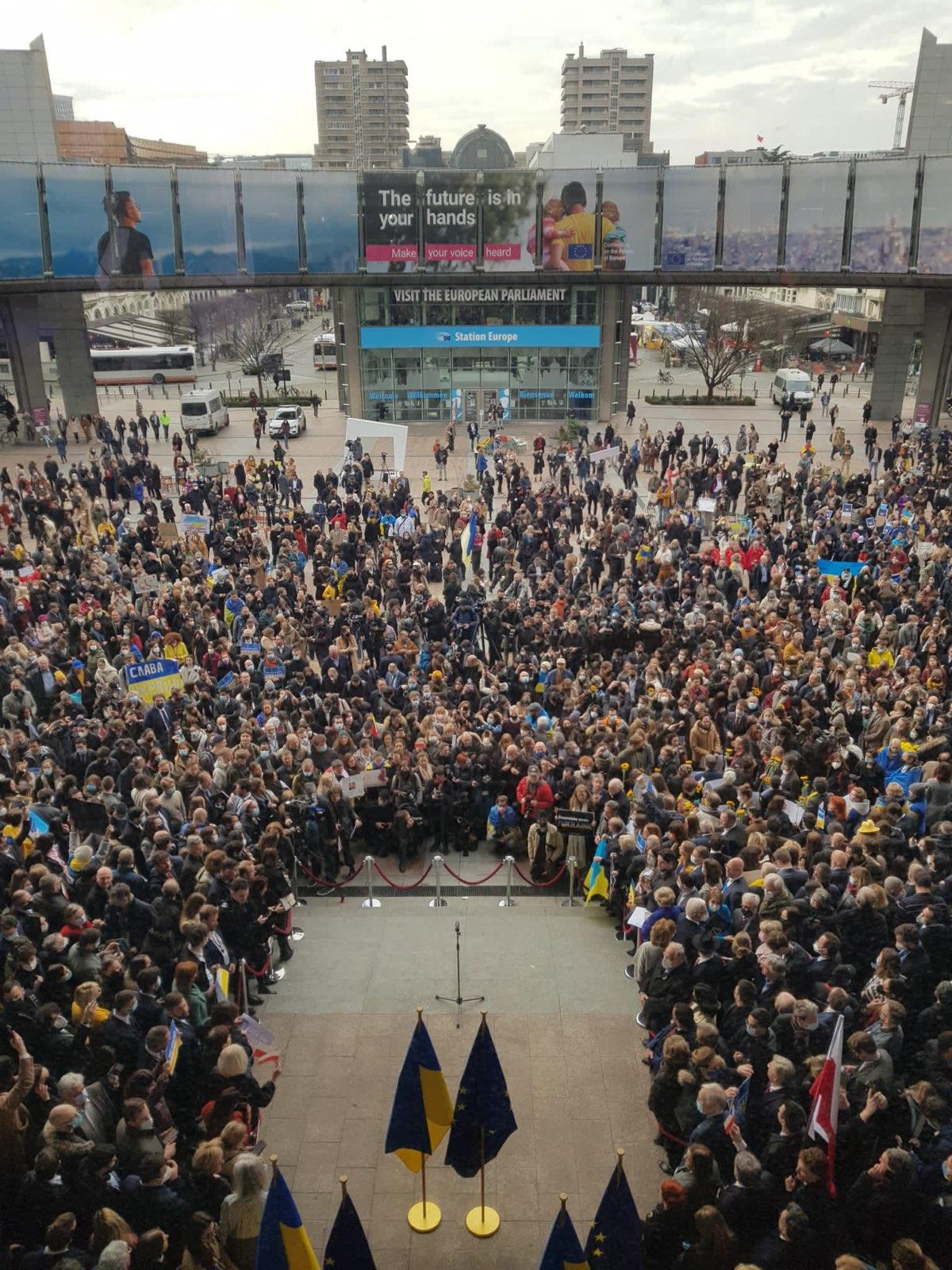 Parliament’s resolution. After the speeches of EU representatives and Ukrainian political leaders, the debate continued among MEPs, with many of them taking the floor. Parliament voted on a political resolution “calling on the EU institutions to work towards granting EU candidate status to Ukraine, in line with Article 49 of the Treaty on European Union and on the basis of merit, and, in the meantime, to continue to work towards its integration into the EU single market along the lines of the Association Agreement.” The resolution has been signed by all the political groups in the hemicycle ( People’ s Party, Socialists & Democrats, Renew/Liberal Democrats, the Greens, Conservatives, the Left), except for the Identity & Democracy Group, i.e. the nationalists, several of whom have professed friendship to Putin in the past. A rally in support of Ukraine took place in Brussels in the afternoon outside the Parliament building.
