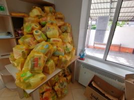 It couldn’t be otherwise as the soup kitchen tends to the basic needs of over two hundred families every day. A further 50 who have mobility problems receive their food parcels at home. Since the arrival of Ukrainian refugees, who fled the war, the service’s schedule has been adjusted accordingly. The first part of the morning is reserved for Moldovan destitute persons, while the Ukrainian families that fled the war arrive after midday. The large indoor kitchen is already in full swing. Chicken broth, pasta, fried chicken and potatoes are almost ready to be served. The menu often features dishes combining local and Italian recipes. Sister Andrea, from Africa, and Sister Ester, from Romania, both missionaries of Mother Teresa’s Charity, are busy peeling potatoes in the courtyard. It might take a long time, given the number of potato sacks, and yet they smile throughout the process. Two young Italians from Milan, doing their community service, and a voluntary worker from Turin, are next to the kitchen, preparing personal hygiene kits for those arriving at the soup kitchen. Meanwhile, pallets of sugar are being loaded into the warehouse.