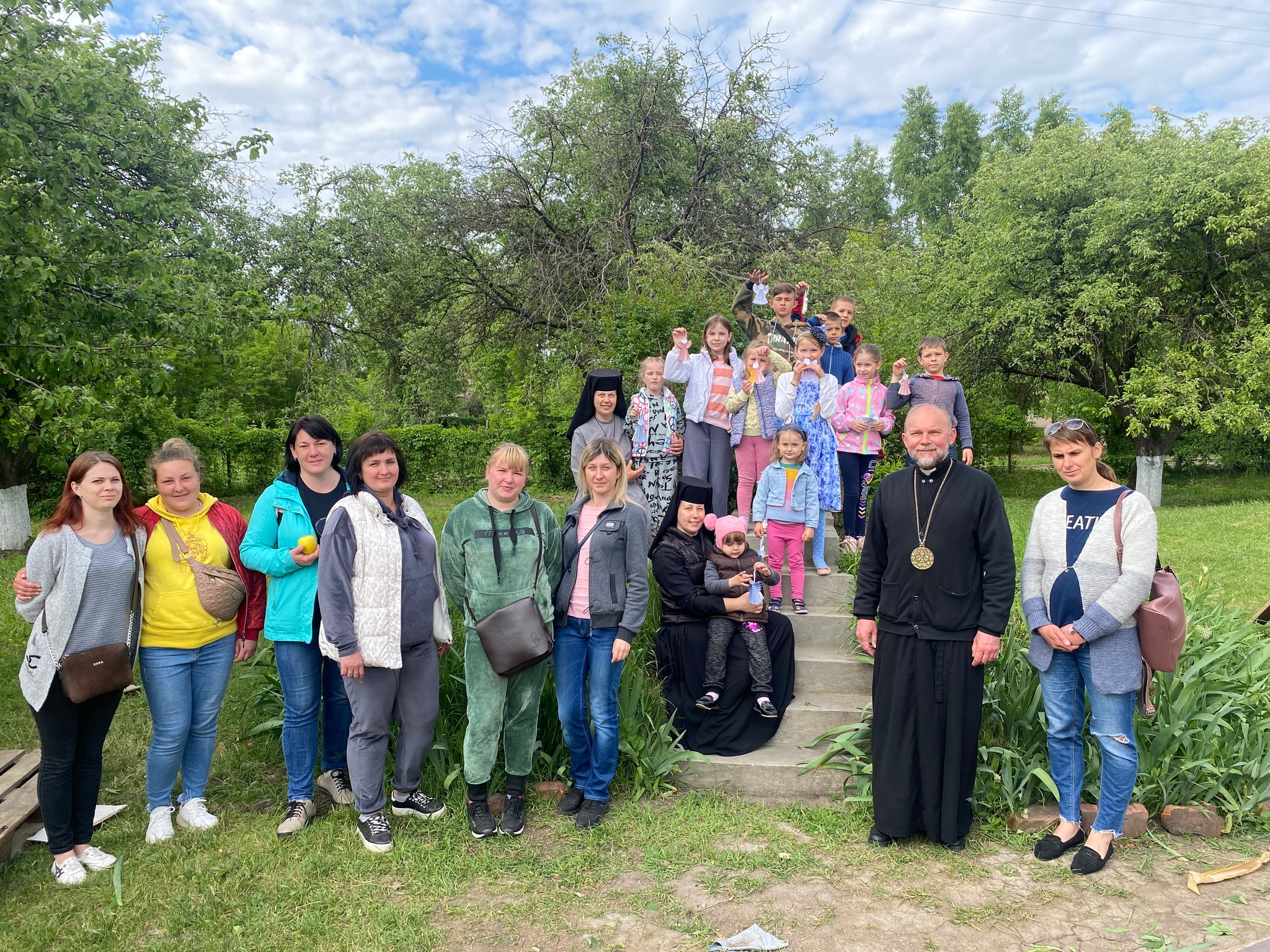 Not only humanitarian aid. Kharkiv’s Greek Catholic cathedral is also filled with the smiles and voices of children. And their presence, amidst the rubble and the continuous bombardment of the city, is an unmistakable sign that despite the war, Ukraine is resisting and has a tremendous longing to be reborn to life. On Sunday, May 22, the first meeting was held in Kharkiv Cathedral for the children who for the past three months have been coming here with their parents to receive humanitarian aid. Indeed, since the early days of the conflict the cathedral has become a focal point for the city’s residents, who line up in an orderly fashion every day to receive basic aid, from food to clothes to baby products. They are always welcomed by the bishop, Vasyliy Tuchapets, exarch of the Greek Catholic Church of Kharkiv. Coming here, for many, is the only way they can survive since almost all stores in the city are closed and it is therefore difficult if not impossible to find food, medicine, and basic necessities. “People come to our cathedral for help,” Bishop Vasyliy tells us. “Parents complain that the children have nothing to do during the day.
