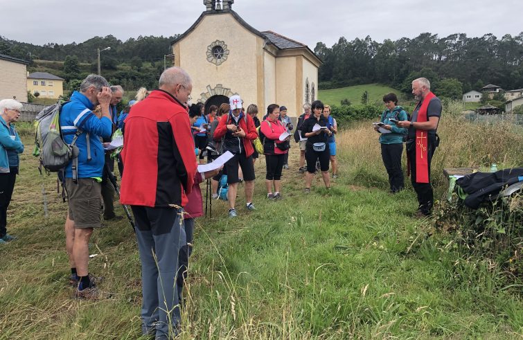 Il 30 giugno tappa impegnativa di 34 km: lasciamo Navia e le Asturie e ci incamminiamo alla volta della Galizia e di Ribadeo, percorrendo anche un tratto del cammino primitivo in mezzo ai boschi dell’entroterra. Il 1° luglio arriviamo a Mondoñedo (30 km), dove pernottiamo nel Seminario, unica struttura nella zona in grado di ospitare un gruppo di oltre 40 persone. Sabato 2 luglio una di una ventina scarsa di km ci porta a Gontàn. Difficile dimenticare la lunga e ripida salita di cui non si vedeva mai la fine, che ci ha condotti fino in cima alla montagna, dove l’unico suono era quello del vento che ritmava il movimento delle pale eoliche poste su un promontorio poco distante. Lassù, dove anche gli alberi cedono il passo alla radura, è stato l’unico momento, in una settimana di cammino, in cui siamo riusciti a mettere a fuoco con chiarezza un gran tratto di strada, che – ironia del cammino (e della vita) – portava ad una nuova lunga salita, che terminava in mezzo alle nuvole.