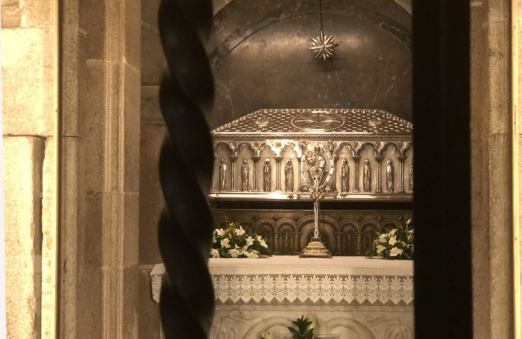 L’ultima messa del pellegrino è per le 19.30. Avvisati alle 18.20 che in piazza delle Argenterie c’è già una nutrita coda di pellegrini, decidiamo rivoluzionare ancora una volta il nostro programma e di unirci al gruppo in attesa. Siamo lì dieci minuti più tardi e la coda è già arrivata a metà di piazza della Quintana, quella su cui si affacciano la Porta Santa e il monastero delle clarisse. Una coda che di minuto in minuto cresce sempre più, fino a diventare un grande serpentone che si snoda lungo tutto il perimetro della piazza. Passano i minuti, ma la coda non si muove. Sono le 19 e, niente, siamo sempre lì, nello stesso punto da mezz’ora e nulla è cambiato. La celebrazione di ordinazione è terminata e le porte della cattedrale si aprono alle 19.15. I pellegrini iniziano lentamente ad entrare. In considerazione del gran numero di persone che si sono messe in coda prima di noi, la paura è quella di rimanere ancora una volta bloccati davanti al cartello “aforo completo”.