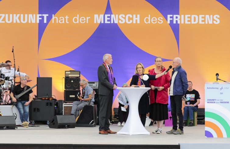 a week after the Katholikentage event. Regional elections are scheduled for September in Thuringia, Saxony and Brandenburg. The far-right populist party AfD (Alternative für Deutschland – Alternative for Germany) is well ahead in the polls in all three federal states. The fact that the Federal Office for the Protection of the Constitution classifies the AfD’s regional branches in Saxony and Thuringia as right-wing extremist does not diminish its popularity. However, the Katholikentag has clearly spoken out against the presence of AfD delegates as panel speakers in the dialogue sessions. The Catholics in Erfurt “cannot be neutral, they have to take a clear stand”, the president of the ZdK, Irme Stetter-Karp, repeated in the last few days: “It is our firm belief that peace requires more than the absence of war. Peace needs people who, day after day, do their utmost to ensure the eradication of violence, exclusion and hatred.”