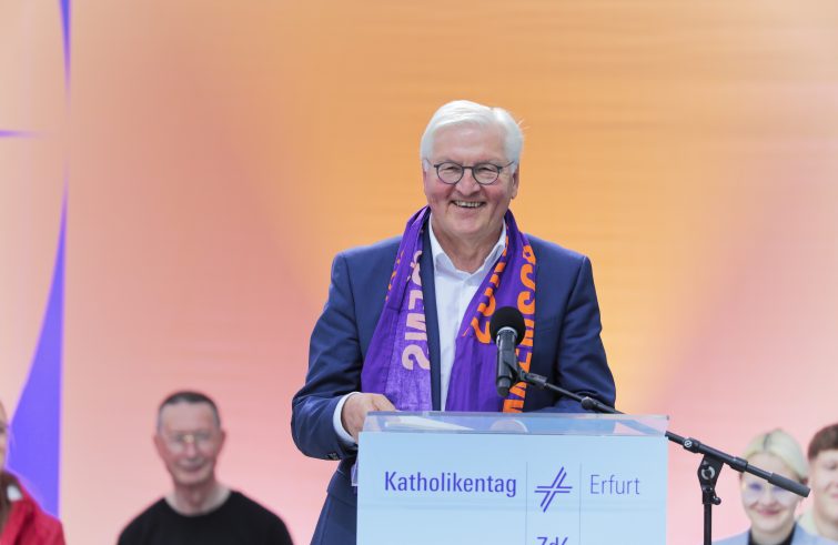 The 103rd Day of German Catholics, or Katholikentag, has opened in Erfurt, the capital of Thuringia, in the heart of Germany. Federal President Frank-Walter Steinmeier (pictured below) attended the opening ceremony on the cathedral square last evening (the event runs until 2 June). Some 20,000 participants from all over Germany are expected to attend, including religious and political dignitaries, including Chancellor Olaf Scholz and several government ministers. Some 500 events are scheduled through Sunday, including a variety of panel discussions on current, socio-political and ecclesial issues. The motto of the Catholic Day is “The Future Belongs to the Peacemakers”. Questions of war and peace, the development of digital technology, democracy, climate change, social justice and the fight against extremism feature on the program, as underlined by the Central Committee of German Catholics (ZDK), which is hosting the event.