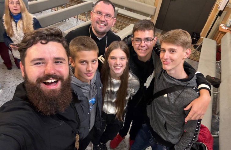 Mons. Maskym Ryabukha, vescovo greco-cattolico di Donetsk insieme ad un gruppo di giovani (foto M. Ryabukha)