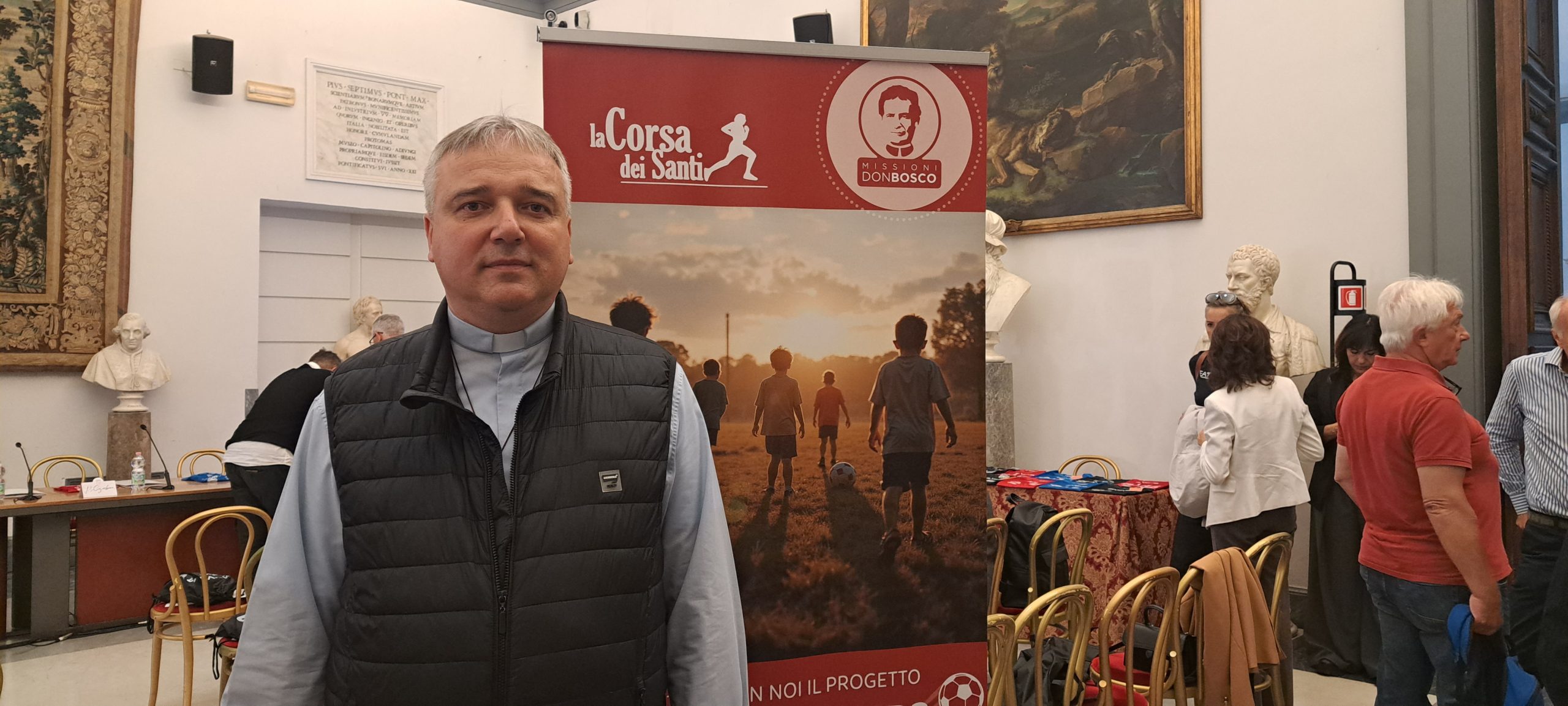 Don Daniel Antùnez di Missioni don Bosco, alla presentazione della “Corsa dei Santi” di Roma (foto Biagioni/SIR)