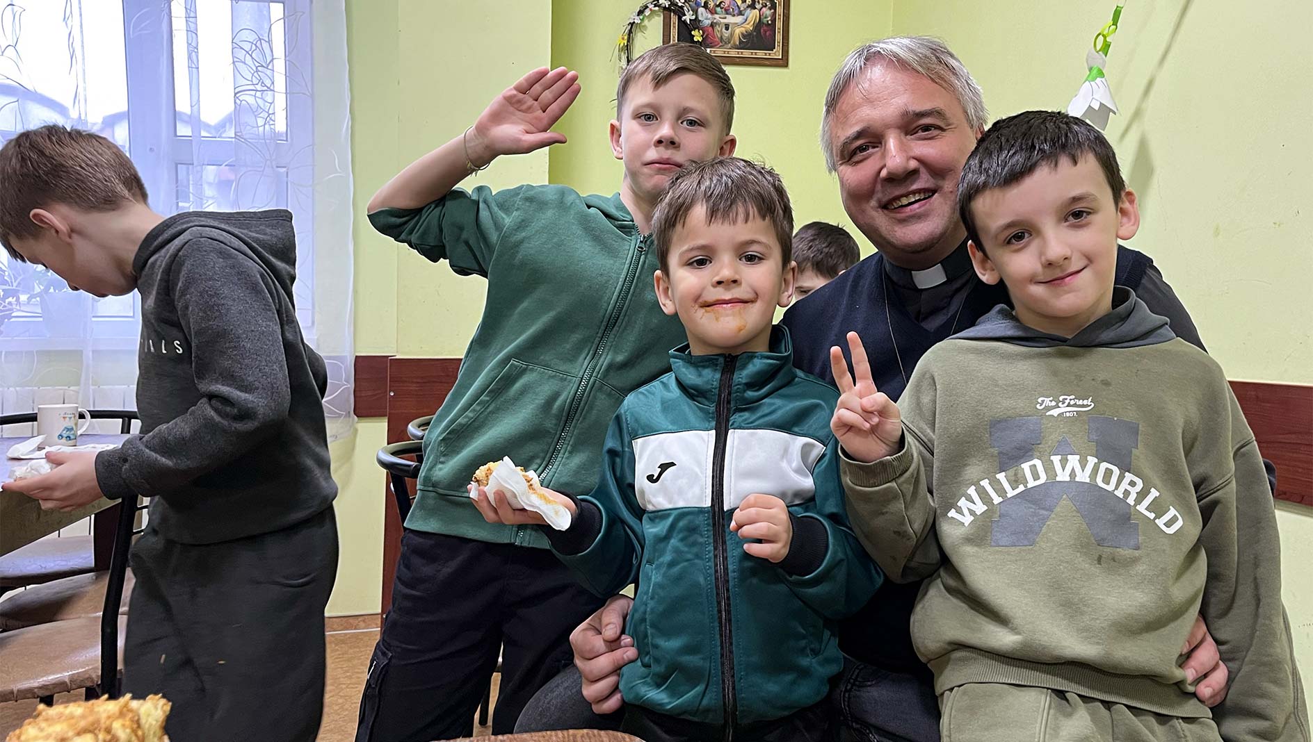 padre Mykhaylo Chaban con i bambini del Centro “Bosco” di Leopoli (foto salesiani)