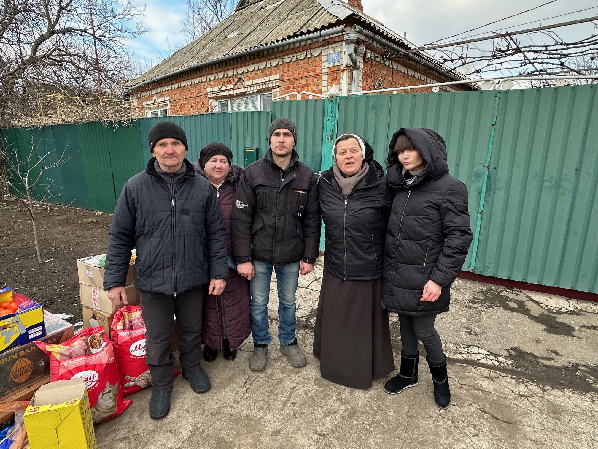 Fango e ghiaccio. Asfalto e buche. Di città in città, di villaggio in villaggio, a ridosso della linea del fronte in Ucraina, per consegnare 13.000 chilogrammi di generi di prima necessità nelle oblast di Odessa, Kherson, Dnipropetrovsk e Zaporizhzhia. “Frontiere di Pace”, gruppo che ha base nella parrocchia di Maccio, in provincia di Como, si è messo in viaggio per la trentatreesima missione umanitaria. A tre anni dall’invasione russa su larga scala in Ucraina, lo scorso 14 febbraio cinque volontari sono partiti, in rappresentanza di una rete di solidarietà territoriale: circa 3.000 chilometri per raggiungere comunità ucraine che resistono in condizioni di precarietà e ancora invocano giustizia e pace. Ad affiancare Giambattista Mosa, Laura Pini, Luca Trippetti, Carmelo Pellicanò, c’è la fondamentale presenza di padre Ihor Boyko, rettore del seminario greco cattolico dello Spirito Santo a Lviv. Cibo, medicinali, prodotti per l’igiene personale, vestiti, giocattoli e palloni da calcio: tutto è indispensabile alla sopravvivenza delle persone che ricevono sostegno. Non si tratta però solo di trasportare e fornire aiuti materiali, ogni viaggio ha dato concretezza alla volontà di testimoniare cosa significa la guerra in Ucraina, dando voce a donne e uomini che quotidianamente fanno i conti con la precarietà e la paura. Come quelli della piccola comunità greco cattolica di Fedorivka, tra cui Maria Ivanovna, 69 anni, che aspettava l’arrivo dei volontari, già stati in precedenza nel suo villaggio rurale. “Vi abbiamo atteso tanto – racconta, mentre cade qualche fiocco di neve, con gli occhi che non riescono a trattenere le lacrime -. Adesso è bello avervi qui con noi. Sapere che non siamo soli”. Una presenza che conforta e aiuta a non sentirsi abbandonati, anche se a tre chilometri dai militari russi dislocati sull’altra riva del grande fiume Dnipro.