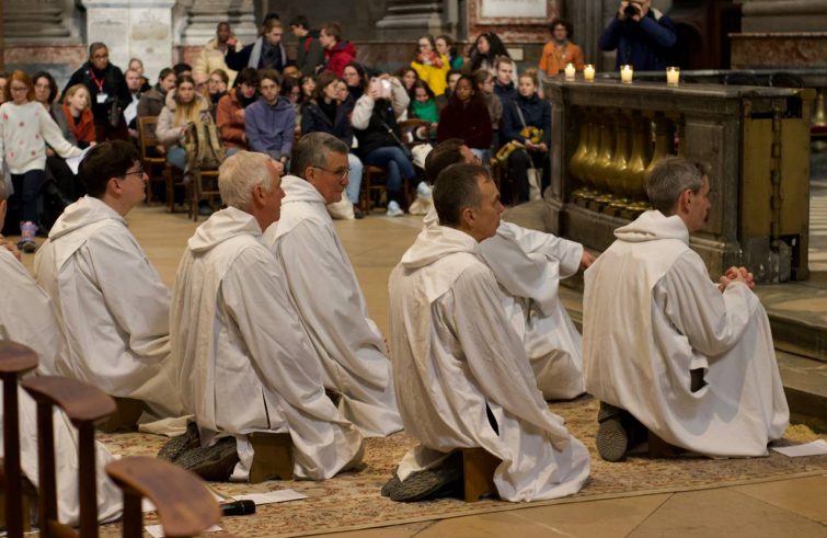 Fratelli della comunità di Taizé in preghiera a Parigi (Foto R.Demush)