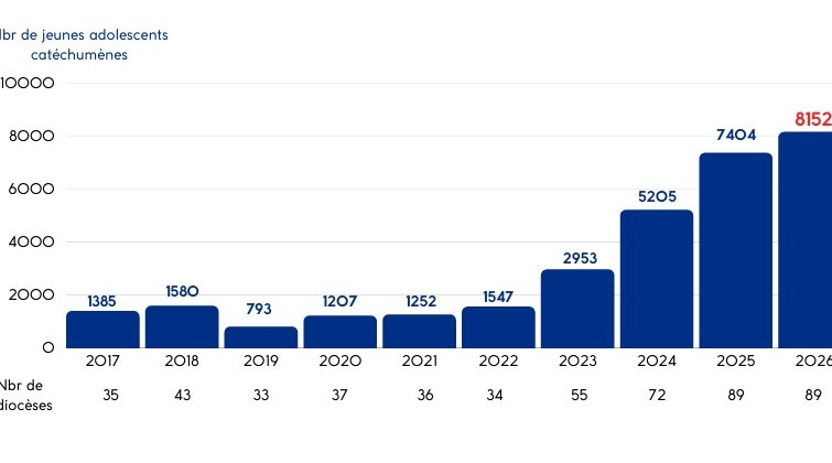 Paragrafo particolarmente sorprendente quello riguardante gli adolescenti. Nel 2026, si contano oltre 8.100 catecumeni adolescenti in 89 diocesi francesi, pari al 90% del totale, con un aumento del 10% tra il 2025 e il 2026. La proporzione di catecumeni adolescenti, ragazze e ragazzi, è paragonabile a quella osservata tra gli adulti: 65% ragazze e 35% ragazzi. Per la stragrande maggioranza, i giovani vengono battezzati durante la Veglia Pasquale con gli adulti o la mattina di Pasqua. Ricevono anche il sacramento dell’Eucaristia. Per quanto riguarda il sacramento della Confermazione, a volte viene posticipato affinché i giovani neofiti possano vivere questo sacramento con i giovani delle loro parrocchie, cappellanie o scuole, che stanno percorrendo insieme il cammino verso questo sacramento.