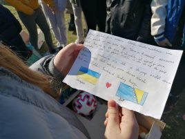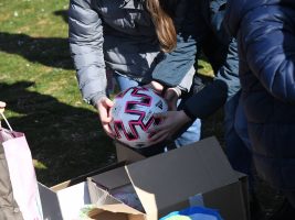 Tempo di sperare. Intanto il biglietto di Zlatko è passato di mano in mano come i regali, palloni, giochi di società, dolcetti, peluche, dvd, bambole e costruzioni. Chi lo legge lo rimette nello scatolone dei regali, così che tutti possano vederlo e leggerlo. Una bambina si tiene stretto un peluche – “ne aveva uno simile a casa in Ucraina, un regalo del papà” ci fa capire la mamma –. Nel prato due piccole squadre di calcio miste, bambini ucraini e bosniaci insieme. Giacche a vento a delimitare le porte. Questo è il tempo di giocare e di sperare.