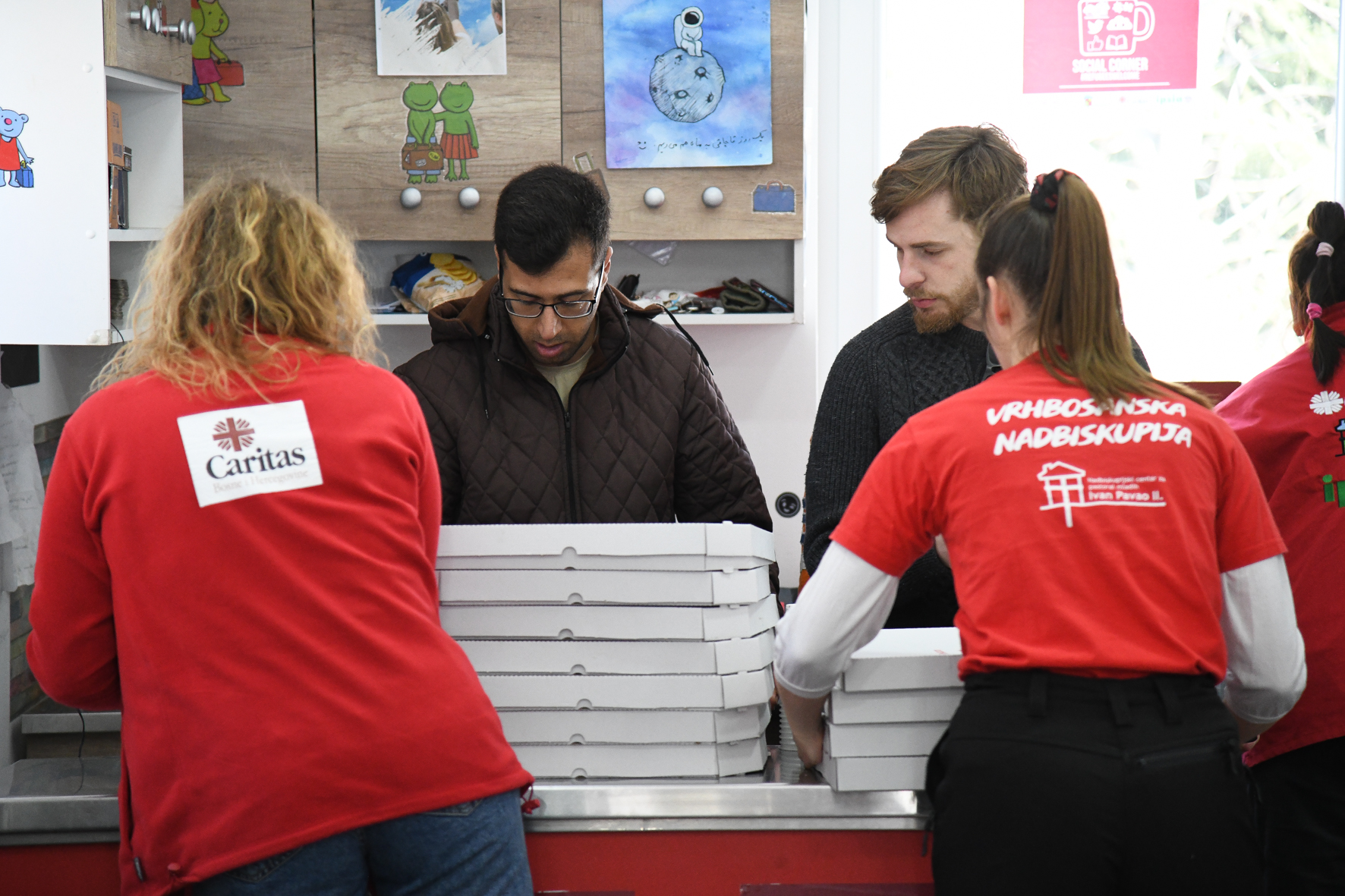 A gift from Pope Francis. The Social Corner, opened in October 2020, was made possible thanks to a donation by Pope Francis. The Pope has in so doing sustained a number of projects for the reception of migrants along the Balkan Route, which runs from Greece up the Balkan Peninsula to the EU countries. It is the only passage into Europe for thousands of migrants. The Social Corners of two temporary reception camps in Bosnia-Herzegovina, Ušivak (Sarajevo) and Sedra, near Bihac, on the border with Croatia, are amongst the most remarkable of these projects. The Social Corner consists of a prefabricated building offering workshops and handicraft activities, language courses and games. A place where volunteer workers distribute tea or warm coffee every day.