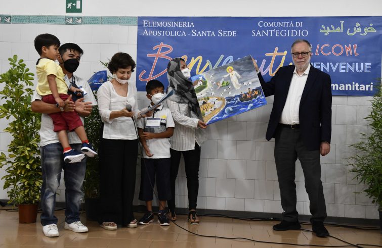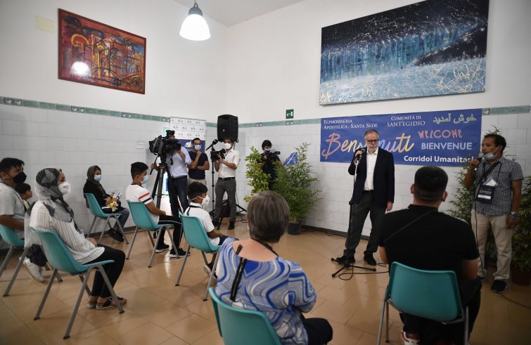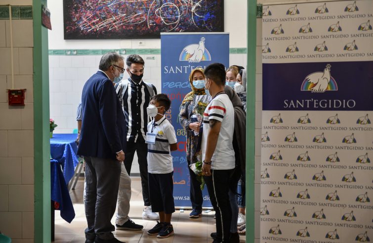 Mascherine e veli in testa per le donne, bandierine azzurre di benvenuto e ingresso gioioso nella mensa dei poveri di via Dandolo della Comunità di Sant’Egidio, a Roma. Con due ore e mezza di ritardo rispetto al previsto per via delle misure di controllo della pandemia a Fiumicino. Ma sani, salvi e in salute. Un ritardo inconsistente agli occhi di chi ha dovuto trascorrere anni in fuga, dall’Afghanistan fino all’isola di Lesbo, in Grecia, definita da tutti “l’inferno d’Europa”. Qui migliaia di rifugiati sono bloccati nei campi per anni senza un futuro, in condizioni a dir poco disumane. Questi quattro nuclei familiari, 10 afghani tra cui due bambini, riescono ad intravedere oggi una speranza grazie ai corridoi umanitari organizzati dall’Elemosineria Apostolica insieme alla Comunità di Sant’Egidio, con la collaborazione dei governi italiano e greco. Dovevano partire a dicembre, ma il Covid-19 e le chiusure delle frontiere hanno procrastinato tutto. Si tratta dell’ultimo gruppo di profughi che Papa Francesco ha voluto portare in salvezza, che si aggiungono ai 57 già venuti in Italia, con diversi viaggi. Il primo è stato il il 16 aprile 2016 nello stesso aereo con cui il Papa è tornato a Roma dalla sua storica visita a Lesbo. “Oggi è la prima porta che si apre dopo il lockdown”, ha detto il fondatore della Comunità di Sant’Egidio Andrea Riccardi, accogliendoli nei locali della mensa dei poveri nel cuore di Trastevere. Con il sistema dei corridoi umanitari sono giunti finora in Europa oltre 3 mila profughi dal Medio Oriente e dall’Africa. Tutto questo mentre nelle aule parlamentari sembra che si stiano smuovendo le coscienze sulle tragedie dei migranti. Dopo le foto agghiaccianti del corpo annegato nel Mediterraneo che nessuno recupera, 22 deputati della maggioranza hanno votato una risoluzione trasversale che esprime contrarietà agli accordi dell’Italia con Tripoli.