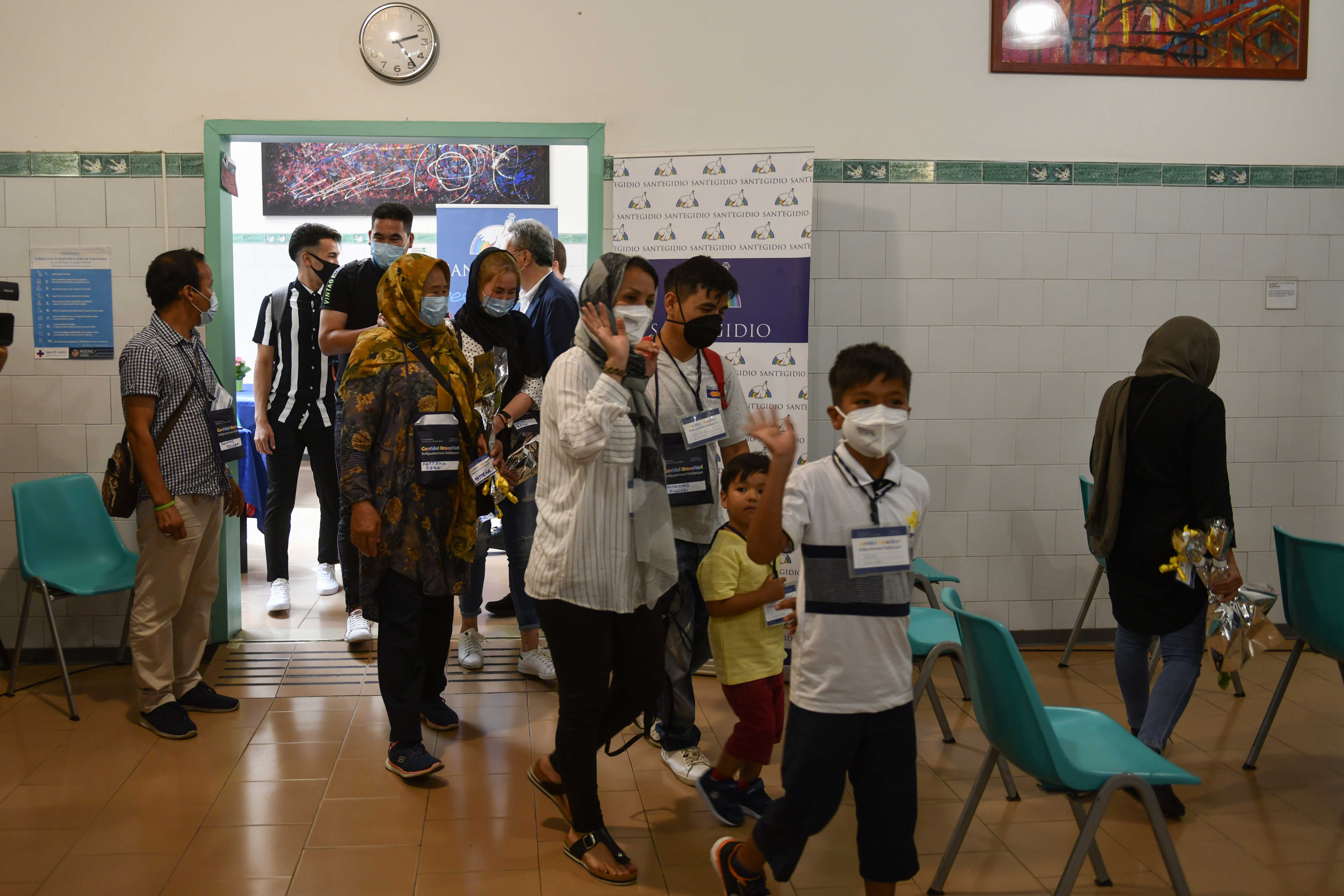 Mascherine e veli in testa per le donne, bandierine azzurre di benvenuto e ingresso gioioso nella mensa dei poveri di via Dandolo della Comunità di Sant’Egidio, a Roma. Con due ore e mezza di ritardo rispetto al previsto per via delle misure di controllo della pandemia a Fiumicino. Ma sani, salvi e in salute. Un ritardo inconsistente agli occhi di chi ha dovuto trascorrere anni in fuga, dall’Afghanistan fino all’isola di Lesbo, in Grecia, definita da tutti “l’inferno d’Europa”. Qui migliaia di rifugiati sono bloccati nei campi per anni senza un futuro, in condizioni a dir poco disumane. Questi quattro nuclei familiari, 10 afghani tra cui due bambini, riescono ad intravedere oggi una speranza grazie ai corridoi umanitari organizzati dall’Elemosineria Apostolica insieme alla Comunità di Sant’Egidio, con la collaborazione dei governi italiano e greco. Dovevano partire a dicembre, ma il Covid-19 e le chiusure delle frontiere hanno procrastinato tutto.  Si tratta dell’ultimo gruppo di profughi che Papa Francesco ha voluto portare in salvezza, che si aggiungono ai 57 già venuti in Italia, con diversi viaggi. Il primo è stato il il 16 aprile 2016 nello stesso aereo con cui il Papa è tornato a Roma dalla sua storica visita a Lesbo. “Oggi è la prima porta che si apre dopo il lockdown”, ha detto il fondatore della Comunità di Sant’Egidio Andrea Riccardi, accogliendoli nei locali della mensa dei poveri nel cuore di Trastevere. Con il sistema dei corridoi umanitari sono giunti finora in Europa oltre 3 mila profughi dal Medio Oriente e dall’Africa.  Tutto questo mentre nelle aule parlamentari sembra che si stiano smuovendo le coscienze sulle tragedie dei migranti. Dopo le foto agghiaccianti del corpo annegato nel Mediterraneo che nessuno recupera, 22 deputati della maggioranza hanno votato una risoluzione trasversale che esprime contrarietà agli accordi dell’Italia con Tripoli.