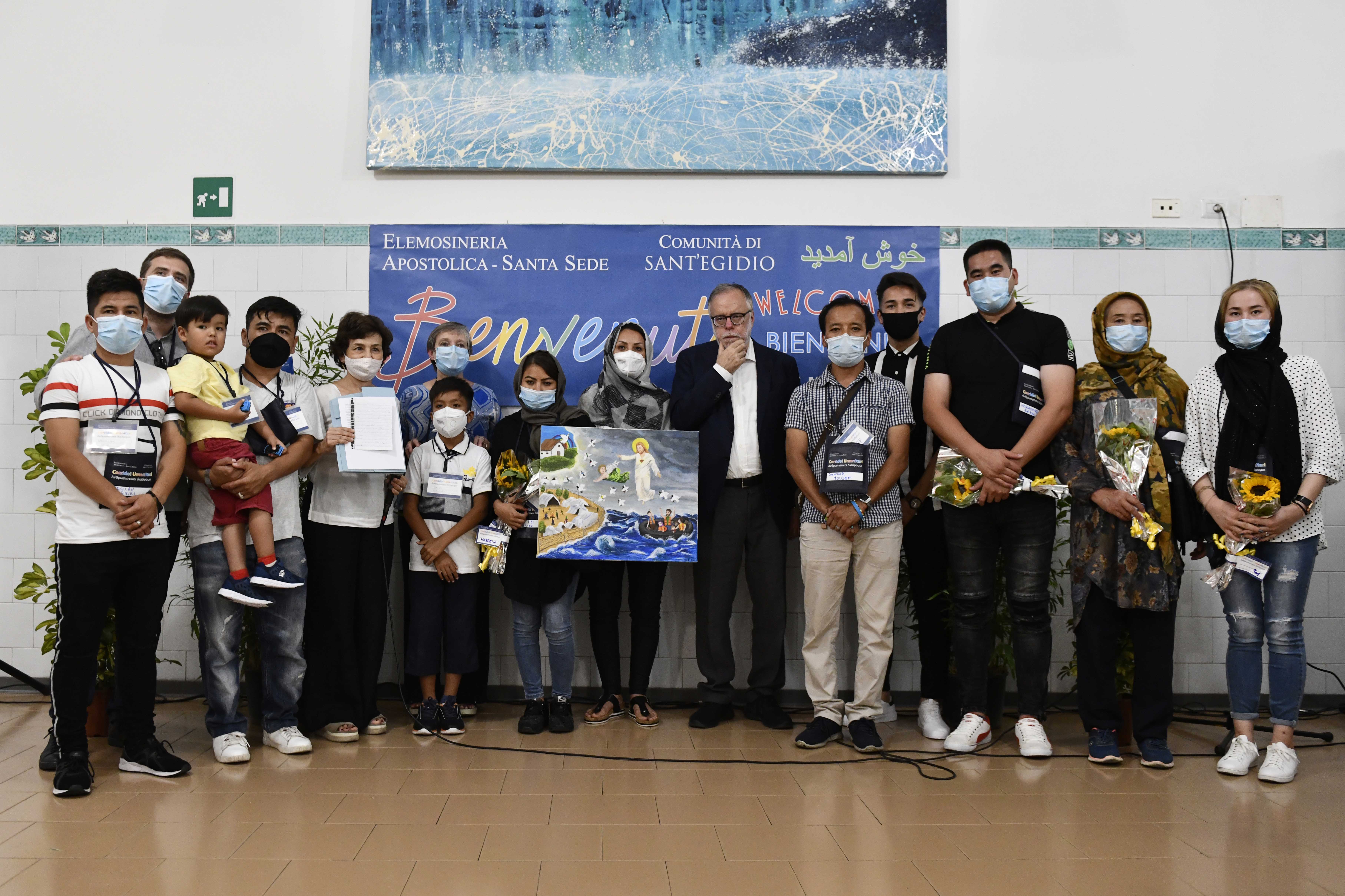 Mascherine e veli in testa per le donne, bandierine azzurre di benvenuto e ingresso gioioso nella mensa dei poveri di via Dandolo della Comunità di Sant’Egidio, a Roma. Con due ore e mezza di ritardo rispetto al previsto per via delle misure di controllo della pandemia a Fiumicino. Ma sani, salvi e in salute. Un ritardo inconsistente agli occhi di chi ha dovuto trascorrere anni in fuga, dall’Afghanistan fino all’isola di Lesbo, in Grecia, definita da tutti “l’inferno d’Europa”. Qui migliaia di rifugiati sono bloccati nei campi per anni senza un futuro, in condizioni a dir poco disumane. Questi quattro nuclei familiari, 10 afghani tra cui due bambini, riescono ad intravedere oggi una speranza grazie ai corridoi umanitari organizzati dall’Elemosineria Apostolica insieme alla Comunità di Sant’Egidio, con la collaborazione dei governi italiano e greco. Dovevano partire a dicembre, ma il Covid-19 e le chiusure delle frontiere hanno procrastinato tutto. Si tratta dell’ultimo gruppo di profughi che Papa Francesco ha voluto portare in salvezza, che si aggiungono ai 57 già venuti in Italia, con diversi viaggi. Il primo è stato il il 16 aprile 2016 nello stesso aereo con cui il Papa è tornato a Roma dalla sua storica visita a Lesbo. “Oggi è la prima porta che si apre dopo il lockdown”, ha detto il fondatore della Comunità di Sant’Egidio Andrea Riccardi, accogliendoli nei locali della mensa dei poveri nel cuore di Trastevere. Con il sistema dei corridoi umanitari sono giunti finora in Europa oltre 3 mila profughi dal Medio Oriente e dall’Africa. Tutto questo mentre nelle aule parlamentari sembra che si stiano smuovendo le coscienze sulle tragedie dei migranti. Dopo le foto agghiaccianti del corpo annegato nel Mediterraneo che nessuno recupera, 22 deputati della maggioranza hanno votato una risoluzione trasversale che esprime contrarietà agli accordi dell’Italia con Tripoli.
