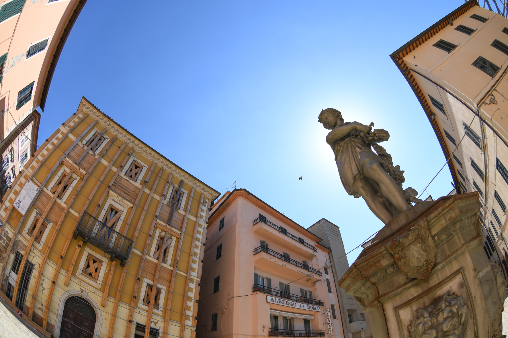 Non ci sono macerie anche se tutto è rimasto fermo a quattro anni fa. A raccontare il sisma del 24 agosto 2016 che ha devastato il Centro Italia sono le crepe aperte nei palazzi storici e nelle case, le porte spalancate nella fuga che lasciano intravedere le stanze interne ancora piene di ricordi, le finestre divelte, pezzi di calcinaccio in terra. Sul portone di una casa qualcuno ha messo un fiocco blu, nuovo di zecca, per festeggiare una nascita che ha il sapore della speranza, il vagito di chi è nato qui e qui vuole restare. Automobili schiacciate dai crolli oggi assomigliano a dei vasi pieni di erbacce. Chiese ingabbiate per evitare ulteriori crolli. E poi l’Università, con i suoi 700 anni di storia e oltre 7000 studenti, vero e proprio cuore pulsante di Camerino, e tanti altri luoghi di formazione, di ritrovo, attività ed esercizi commerciali, tutti chiusi. Camerino oggi, 4 anni dopo quel 24 agosto – ma non dimentichiamo le scosse di ottobre dello stesso anno – è forse il centro con la più grande zona rossa dell’intero cratere sismico.