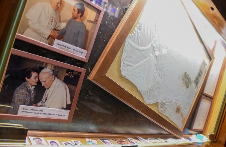 Infatti è difficile non ricordare come Giovanni Poalo II abbia immediatamente perdonato Mehmet Ali Ağca, il killer turco autore del gesto, pregando per lui pubblicamente con una registrazione audio diffusa in piazza San Pietro durante il Regina Coeli della domenica seguente all’attentato, e recandosi anche nel carcere di Rebibbia, il 27 dicembre 1983, per incontrarlo. “Questa è una lezione di vita molto grande per ciascuno di noi, perché molte volte non riusciamo a perdonare piccole cose e dinanzi alla testimonianza di questo grande papa, dovremmo rimanere solo in silenzio, commuovere il nostro cuore e rivedere i sentimenti più intimi che portiamo verso chi ci offende”, confessa suor Maria Rosaria Matranga che da sempre vede pellegrinaggi di fedeli per andare a visitare quella maglietta, anche pullman organizzati, spinti dal desiderio di pregare san Giovanni Paolo II e chiedere la grazia di una guarigione, per ristabilire la pace nelle famiglie o anche semplicemente per lasciare una loro fotografia come segno di vicinanza al papa. “Molti telefonano per affidare a noi le preghiere all’intercessione di Giovanni Paolo II”, aggiunge la superiora che, rispettando le regole anti Covid-19, spera di poter riaprire la chiesa Regina Mundi per l’anniversario dell’attentato,
