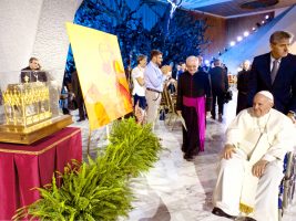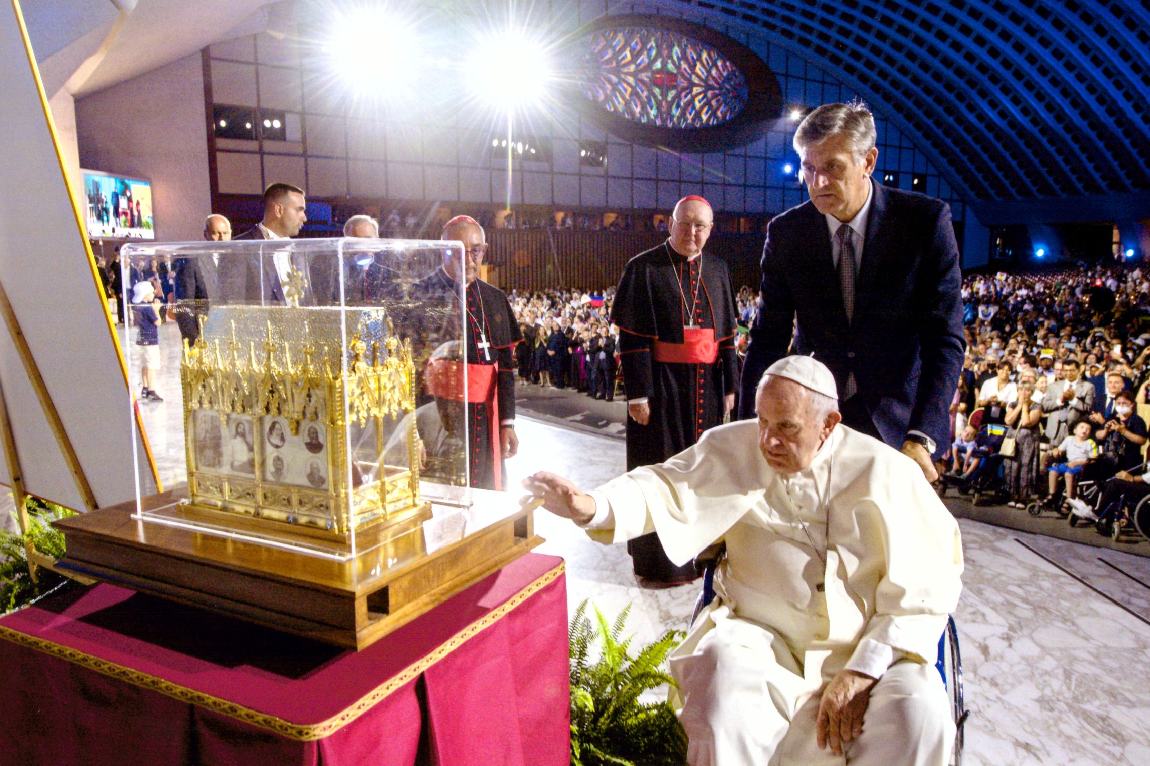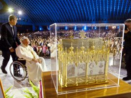 Durante i lavori del X Incontro mondiale delle famiglie sono stati presenti nell’Aula Paolo VI la pregiata e artistica Urna contenente alcune reliquie e ricordi personali dei Beati Coniugi Luigi e Maria Beltrame Quattrocchi, Patroni dell’evento internazionale. Il prezioso reliquiario, esposto alla preghiera e alla venerazione di Papa Francesco, viene dall’Arcidiocesi di Napoli ed è custodito dall’Associazione “Il Mestolino di Dio”. Una realtà che promuove la Causa di beatificazione della Venerabile Enrichetta, ultima figlia dei Beati, e diffonde la spiritualità dei Coniugi Beltrame Quattrocchi.