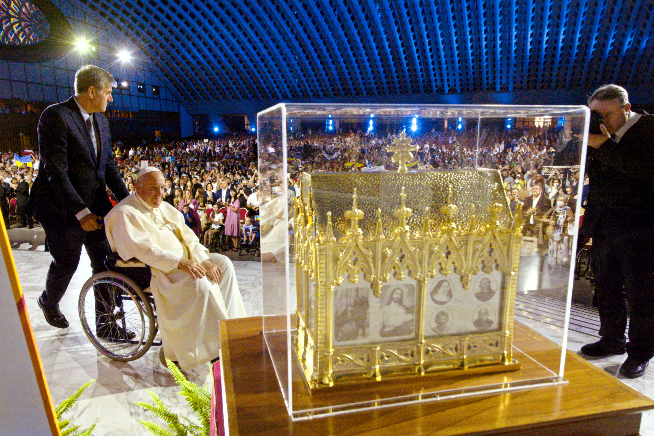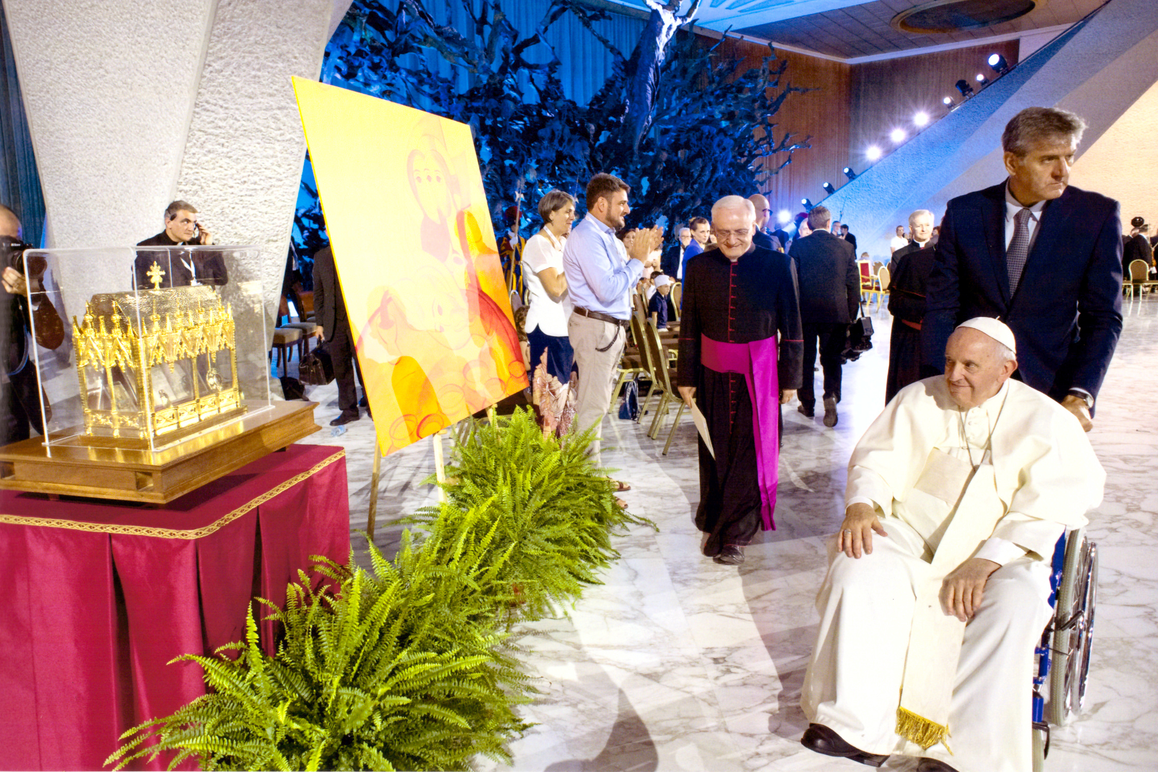 Durante i lavori del X Incontro mondiale delle famiglie sono stati presenti nell’Aula Paolo VI la pregiata e artistica Urna contenente alcune reliquie e ricordi personali dei Beati Coniugi Luigi e Maria Beltrame Quattrocchi, Patroni dell’evento internazionale. Il prezioso reliquiario, esposto alla preghiera e alla venerazione di Papa Francesco, viene dall’Arcidiocesi di Napoli ed è custodito dall’Associazione “Il Mestolino di Dio”. Una realtà che promuove la Causa di beatificazione della Venerabile Enrichetta, ultima figlia dei Beati, e diffonde la spiritualità dei Coniugi Beltrame Quattrocchi.