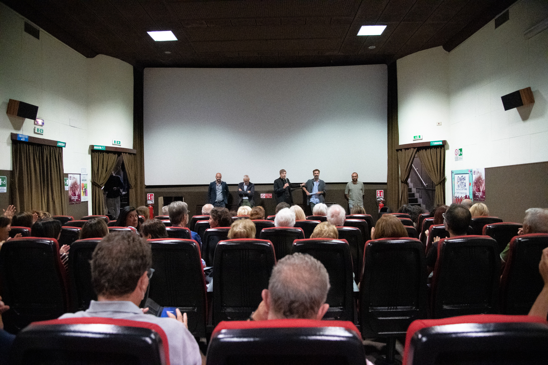 A Roma di cose ne possono capitare moltissime, dal restare ore bloccato con la macchina nel traffico, fino a trovarsi chiuso in una stazione della metropolitana, ma può anche capitare che decidi di andare a guardare tutti i 330 minuti di “Esterno notte” in una domenica di settembre e, tra la prima e la seconda parte, ti capita di farti una chiacchierata con il regista Marco Bellocchio, l’attore Fabrizio Gifuni, lo sceneggiatore Davide Serino ed il produttore Simone Gattoni. È quanto capitato a chi domenica 18 settembre, ha scelto di andare a vedere il film nel Cinema delle Provincie, la “Sala della Comunità” della parrocchia di Sant’Ippolito che rientra nel circuito Acec, riconosciuto anche come Sala d’essai. “Una iniziativa nata un po’ per caso, visto che il produttore e lo scenografo sono miei amici e, mentre giravano il film, cercavano una sala con poltrone in legno, proprio come quelle che avevamo qui in questa sala”,racconta don Davide Maria Tisato, vicario della parrocchia retta da mons. Manlio Asta, che ha presentato gli ospiti e raccolto le numerose domande dei presenti, “siamo stati molto contenti nel rivedere la sala piena e felici di aver offerto l’occasione di poter parlare del film, vivendo in modo attivo il cinema e non passivo, fornendo una chiave di lettura ulteriore”.