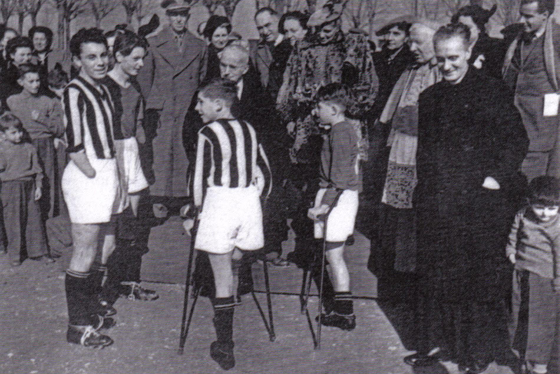 Don Carlo Gnocchi negli anni '50 con alcuni "mutilatini" (Foto Fondazione Don Gnocchi)