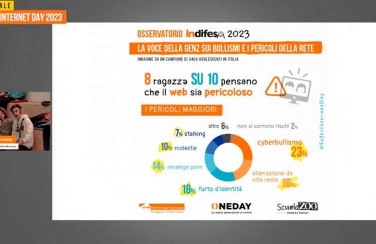Ogni anno il 7 febbraio si celebra il Safer Internet Day. Per l’occasione Terre des Hommes, da sempre in prima linea nella difesa di ragazze e ragazzi da bullismo e violenza online, ha organizzato un incontro a Milano per parlare di questi temi con esperti, ma anche con giovanissimi e con la testimonianza di chi il bullismo l’ha subito, tanto da tentare il suicidio. All’evento “Speciale Safer Internet Day” hanno preso parte oltre 5.000 ragazzi, in presenza e connessi online da tutta Italia. Secondo i dati dell’“Osservatorio indifesa” 2022-23 realizzato da Terre des Hommes, insieme a OneDay e alla community di ScuolaZoo, il 47,7% dei 3.405 ragazzi e ragazze di tutta Italia tra i 14 e i 26 anni, che hanno partecipato all’Osservatorio, è vittima di bullismo o cyberbullismo e il pretesto principale per il quale vengono attaccati è l’aspetto fisico (lo dice il 37% dei partecipanti). Seguono origine etnica 7%; orientamento sessuale 5%; condizione economica 3,5%; religione 3,3%; identità di genere 1,9%; disabilità 1,3%. Quasi 8 ragazzi su 10 hanno paura del web e il cyberbullismo è la minaccia più temuta dagli adolescenti quando sono online, lo afferma il 23% tra loro, ma sono percepite come minacce anche il furto di identità (18%) e l’alienazione dalla vita reale (18%). Il 55% tra i ragazzi dice che i propri genitori non controllano la loro attività online.