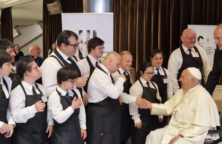 La loro giornata non poteva chiudersi meglio. Dopo un sano e dignitoso momento di lavoro, un incontro indimenticabile, quello con Papa Francesco. I ragazzi e le ragazze della cooperativa dei Girasoli erano tutti lì, in fila uno accanto all’altra, accompagnati dai loro genitori ed educatori emozionati come bambini in attesa del Pontefice e del suo sorriso. Ai soci e ai dipendenti della cooperativa era stato chiesto, infatti, di ristorare con un caffè o uno stuzzichino le pause lavorative dei vescovi italiani riuniti in assemblea nell’Aula Paolo VI in Vaticano. Per loro quindi un fine giornata, tanto inatteso quanto straordinario, che ha sugellato un tempo di lavoro ma anche di vita che certamente resterà vivo nella memoria di tutti e di ciascuno. Dopo l’esperienza del ristorante “La Locanda dei Girasoli”, non andata buon fine, i soci non si sono arresi e con coraggio e determinazione si sono gettati, anima e corpo, in una nuova avventura: un servizio catering di prim’ordine con tanto di “chef”, il fiero Emanuele, un aiuto cuoco, l’amabile Sara e poi camerieri e assistenti di sala, tutti preparati e pronti, all’occorrenza, per rendere gradevoli ed amabili feste, anniversari e ricevimenti di ogni genere. Un team ben organizzato e coeso che nulla ha da invidiare ad altre realtà ben più conosciute e rinomate. La cooperativa (Catering) dei Girasoli è pronta a offrire, con professionalità e competenza, i propri servizi. “I ragazzi hanno bisogno di lavorare – esordisce Stefania Scarduzio, presidente della Cooperativa e “deus ex machina” del progetto –, lavorare infatti li fa sentire parte viva e integrata della società e parte produttiva del Paese. Alcuni sono soci lavoratori, altri dipendenti, tutti con regolare busta paga e con diritto di voto. Venuta meno l’esperienza del ristorante, accompagnata purtroppo da tante parole e pochi fatti, non ci siamo e non si sono rassegnati. Siamo rimasti nel settore della ristorazione vista l’esperienza accumulata ed ecco l’idea del Catering. Un’intuizione che sta sempre più consolidandosi e che grazie all’aiuto di tanti, in questa occasione della Cei, ci offre la possibilità di far conoscere all’esterno la nostra professionalità e di entrare in questo particolare settore. Sappiamo i nostri limiti ma vogliamo competere con tutti perché sappiamo che ne abbiamo la possibilità”.