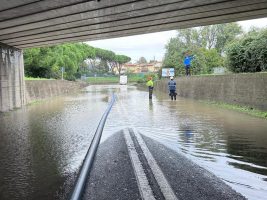 Nella tarda serata di ieri due sottopassi della città, quello di viale Trento e di viale Torino, erano stati quasi del tutto resi di nuovo praticabili. In azione anche i tecnici comunali che hanno effettuato sopralluoghi approfonditi in tutti gli edifici scolastici di Cesenatico senza registrare danni e situazioni di rischio. Per questo motivo oggi – lunedì 21 ottobre – le scuole sono regolarmente aperte. “Gli allagamenti sembrano siano dovuti anche alla mancanza di tenuta del sistema fognario e di quello di raccolta delle acque piovane – spiega Casadei -. La riapertura delle Porte Vinciane nel Porto Canale, che difendono il centro abitato dalle mareggiate, ha permesso un più rapido deflusso delle acque che arrivavano dai canali dell’entroterra evitando guai peggiori. La parrocchia di san Giacomo che guarda sul porto canale è parzialmente allagata. In tutta la zona – conclude il giovane – si lavora con le idrovore per drenare l’acqua dalle abitazioni, scantinati ed esercizi commerciali. Nel frattempo, il sistema fognario ha ripreso a tenere. Speriamo che il tempo ci dia una tregua per fare la conta dei danni. Dobbiamo rialzarci e ripartire”.