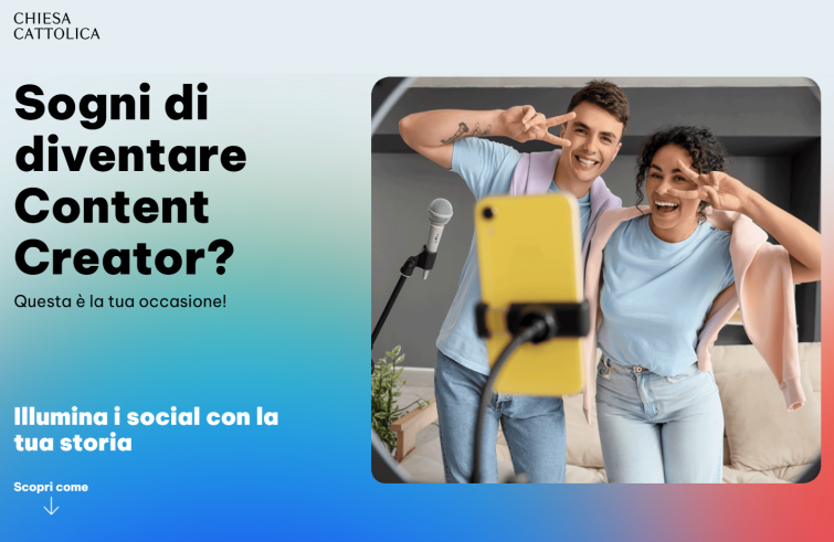 Un progetto per diventare content creator della Chiesa cattolica: ecco “Shine to share”. I giovani, tra i 18 e i 35 anni, potranno così imparare a realizzare contenuti video per i social network e lanciare un messaggio di speranza e di fede nel mondo digitale. L’iniziativa è promossa dalla Chiesa cattolica, attraverso il Servizio Nazionale per la Pastorale Giovanile e il Servizio per la promozione del sostegno economico della Cei, con la direzione didattica dell’Università Cattolica.
