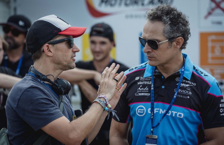 Il regista britannico Mat Whitecross, classe 1977, a lungo specializzato nel documentario musicale – suoi “Oasis: Supersonic” (2016) e “La musica di 007” (2022) – si trova al timone del suo primo lungometraggio giocato tra motori, adrenalina e cuori in tempesta. Parliamo di “Idoli. Fino all’ultima corsa”, film avventuroso-sportivo ambientato nel circuito Moto2 del Motomondiale, una coproduzione italo-spagnola di cui è capofila Warner Bors. Protagonisti Claudio Santamaria, Óscar Casas, Ana Mena, Enrique Arce e Saul Nanni.