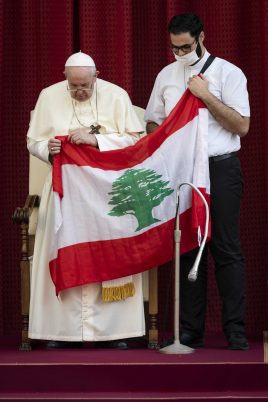 Il telefono di padre Georges Breidy squilla continuamente. Le chiamate arrivano soprattutto dal Libano e da altri Paesi mediorientali. Chiamate che hanno una ragione: il sacerdote libanese di rito maronita, mercoledì scorso, è stato chiamato da Papa Francesco al suo fianco, al termine dell’udienza generale, per pregare insieme per il Paese dei cedri, fortemente colpito da una crisi politica, sociale, economica e, ultimo fatto, le due esplosioni, il 4 agosto scorso, nel porto di Beirut. Da quattro anni, il sacerdote vive in Italia, a Roma, studia Teologia spirituale alla Pontificia Università Gregoriana ed è direttore di Radio Mariam per i Paesi del Medio Oriente. Racconta così al Sir la sua esperienza: “Ho saputo che mercoledì si sarebbe tenuta la prima udienza del Papa alla presenza dei fedeli dopo l’inizio della pandemia. Tenevo a esserci e ho pensato di prendere con me la bandiera del Libano, perché dal momento delle esplosioni a Beirut il Papa ha ricordato spesso il nostro Paese. Quindi, ho pensato che magari, vedendo la bandiera libanese, il Papa avrebbe dato una benedizione al Libano anche da lontano. O un piccolo saluto. Non ho pensato ad altro. Quando, il Santo Padre è arrivato nel cortile non salutava nessuno per le misure anticontagio del Coronavirus. Ma quando ha visto la bandiera si è avvicinato da me, l’ha presa, l’ha baciata e questo ha avuto un grande significato. Me lo hanno detto anche tanti musulmani”.