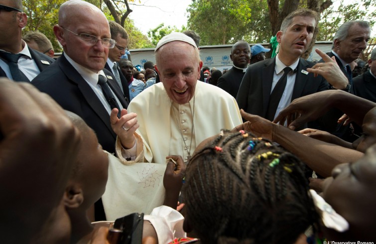 Papa Francesco visita il campo profughi del St. Sauveur (Bangui, 29 novembre 2015)