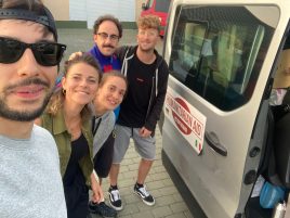 “16 ore chiusi in un pulmino. Chi in 5, chi in 6, noi in 7. 7 persone e un muro di scatoloni colmi di ogni bene a farci compagnia, dai biscotti alla pasta, dai cerotti ai saponi. Eppure, la vera destinazione sono proprio queste ore, perché ci insegnano che stare insieme, stare vicini, non è mai semplice. nonostante le difficoltà di questo lungo viaggio, però, ci sentiamo uniti verso un unico obiettivo, con lo sfondo di questa bandiera gialla e azzurra che è il grano e il cielo d’Ucraina.
