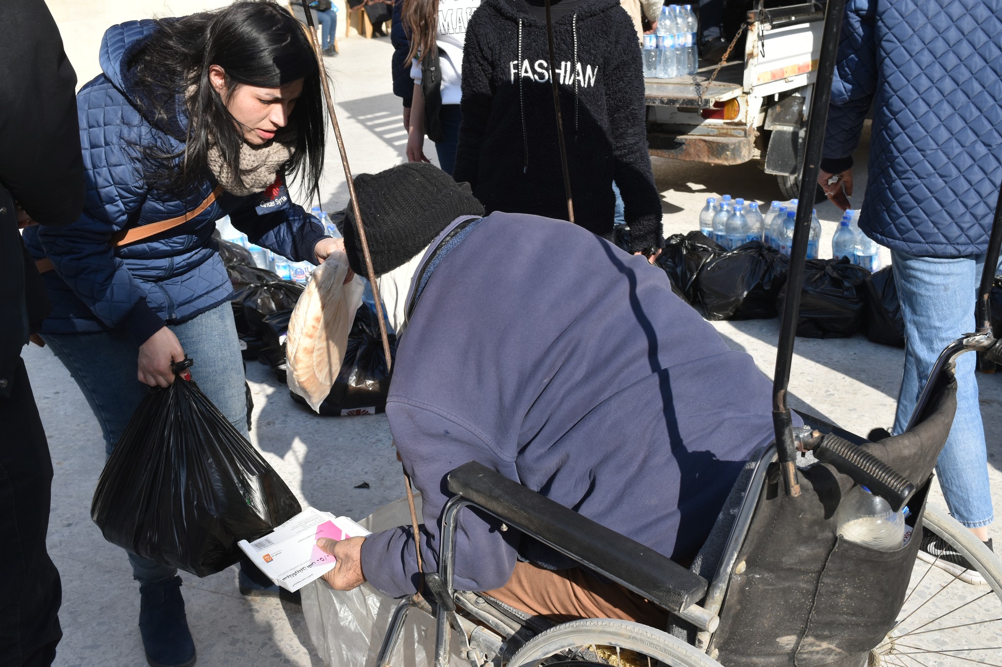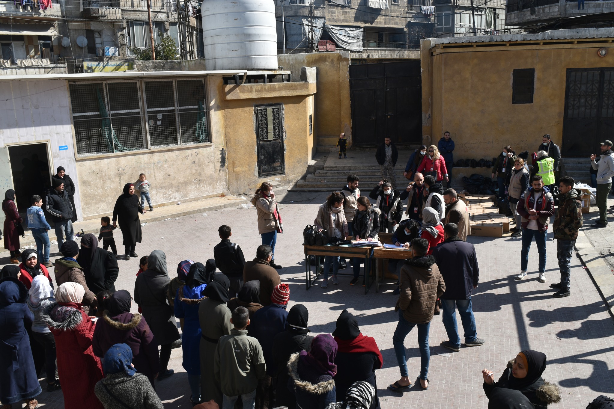 Caritas Siria. Sul territorio siriano colpito dal sisma opera, in prima fila, Caritas Siria, aiutata da altre Caritas nazionali, come quella italiana. In questi giorni i volontari della Caritas stanno rifornendo di cibo e acqua alcune scuole adibite a centri di accoglienza. Ai bambini vengono consegnate delle scarpe invernali e giocattoli.