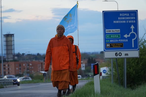 Stanno attraversando l’Italia con un cammino silenzioso, meditativo che porta con sé un messaggio potente di pace, spiritualità e condivisione. Sono un piccolo gruppo di monaci buddisti in cammino per la “World Peace Walk 2025”, un viaggio che attraverserà sette Paesi europei, percorrendo oltre 3.500 chilometri in 85 giorni. Partiti dalla Sicilia il 1° marzo, i monaci arriveranno ad Amsterdam intorno a fine maggio, per poi dirigersi verso la Norvegia, affrontando ogni giorno una distanza che sfiora i 50 km.