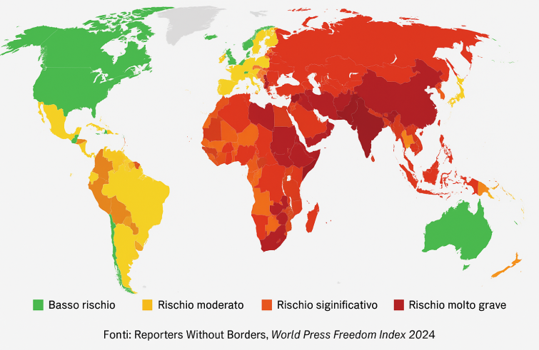 Distribuzione geografica degli omicidi di giornalisti (2024):